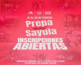 Del 01 al 28 de febrero la Preparatoria Regional de Sayula abre sus INSCRIPCIONES.